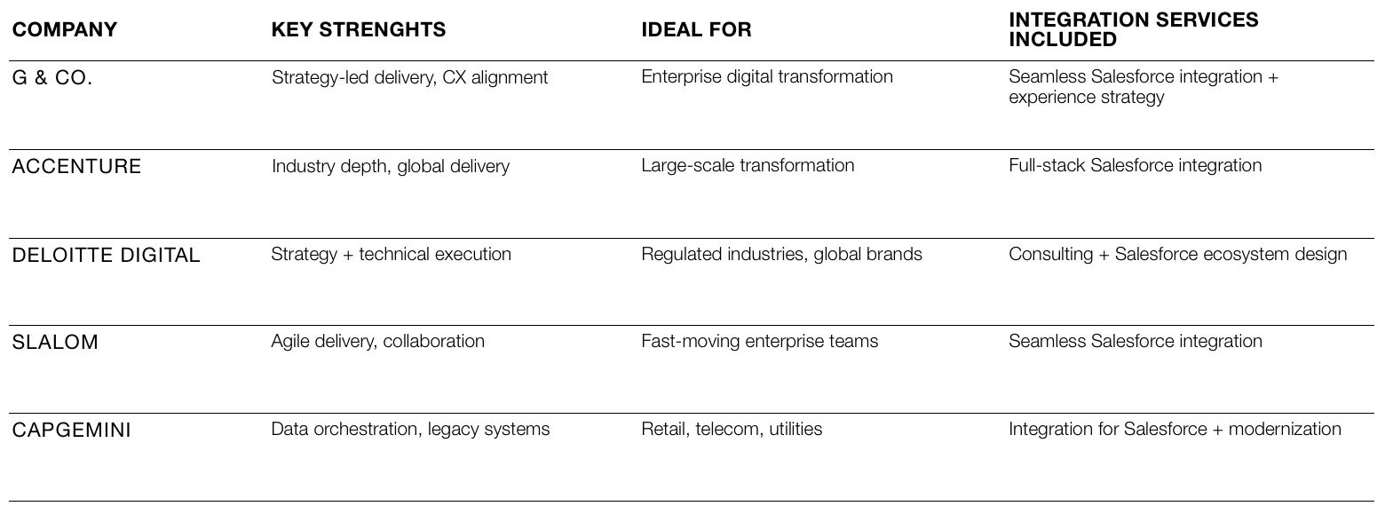 What It Is: Slalom is a modern consultancy combining strategy, agile delivery, and technical depth—with a sharp focus on Salesforce integration.